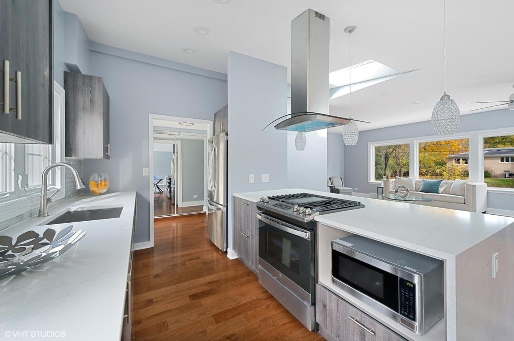 Gorgeous Home, Completely Renovated In Sought After Location! This One Is Not Like The Others! Prepare To Fall In Love With The Gorgeous Hardwood Floors, And Stunning Euro Kitchen With Waterfall Quartz Countertops And Breakfast Bar With Seating. This Is Just What The Chef In The House Is Dreaming Of. The Stunning Light-Filled Main Floor With Large Windows And Skylights Flows Perfectly For Entertaining Inside And Out With Access To The Lovely Brick Paver Patio And Beautiful Yard. The Beautiful Iron Railing Leads To 3 Large Bedrooms Up Including The Master Suite With Spa-Like Private Master Bath. Downstairs You Will Find More Room For Family And Friends In The Large Family Room With Built-In And Loads Of Light, Plus 3rd Full Bath. There Is Also Laundry Room, Storage And Ll Has Exterior Access. 2 Car Attached Garage And New Driveway. Low Taxes That Have Been Appealed. This One Has It All, Just Move In And Enjoy. Convenient Location Close To The Glen, Glenview Shopping, Parks, Lake, And In Award Winning School Disctricts Including Glenbrook South... Welcome Home!
